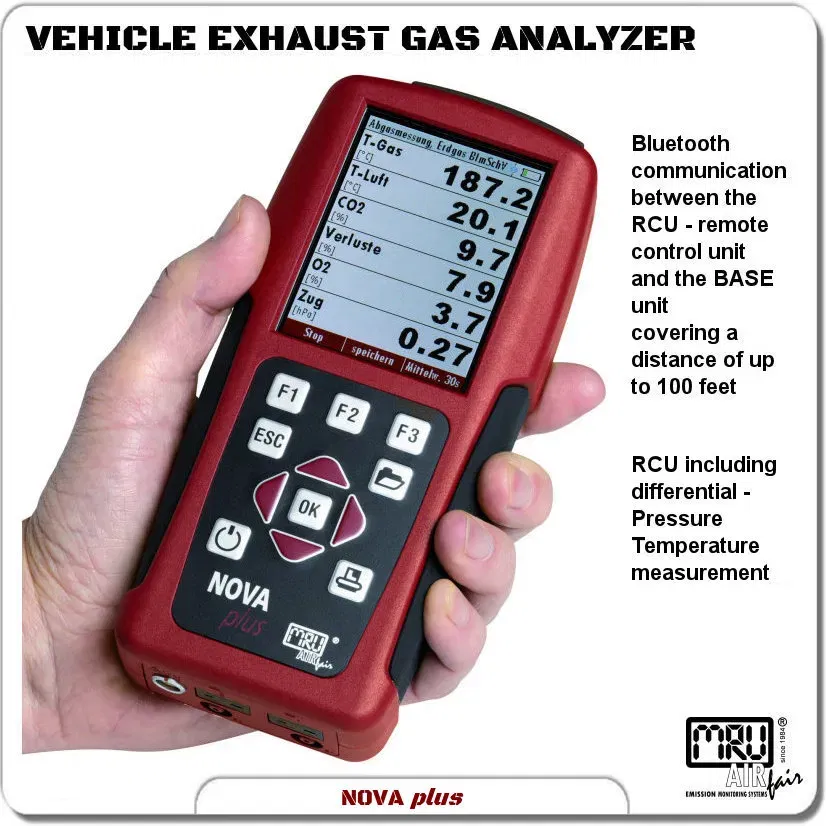 C3H8, CO, CO2 medido, H2S, análisis móvil de gases de combustión, NO, NO2, NOx, O2, analizadores de gases portátiles, simples, SO2, gases de escape de vehículos