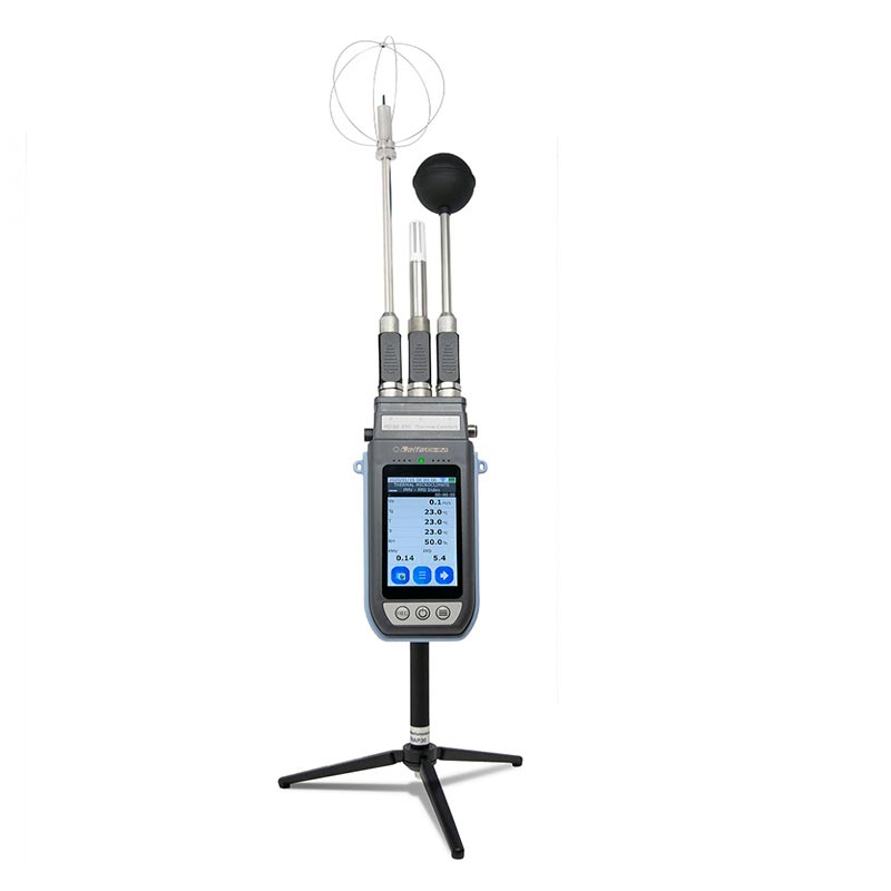 Registrador de datos portátil adecuado para análisis de microclima y calidad del aire interior (Calidad del aire interior, IAQ). Microclima térmico para la medición de WBGT, PMV (voto medio previsto), PPD (porcentaje previsto de insatisfechos), DR (tasa de corriente de aire), TU (intensidad de turbulencia local), HI (índice de calor), UTCI (Índice de clima térmico universal), Índices de TEP (temperatura equivalente percibida), CO 2 , PM1.0, PM2.5 y PM10 . Estimación del tiempo de descomposición del SARS-CoV-2 en superficies. – HD32.3TC es la versión portátil, que se utiliza principalmente en combinación con un soporte de mesa (trípode pequeño). – HD32.3TCA es la versión que se está utilizando con un trípode estable, apto para ser utilizado para mediciones durante un período más largo.